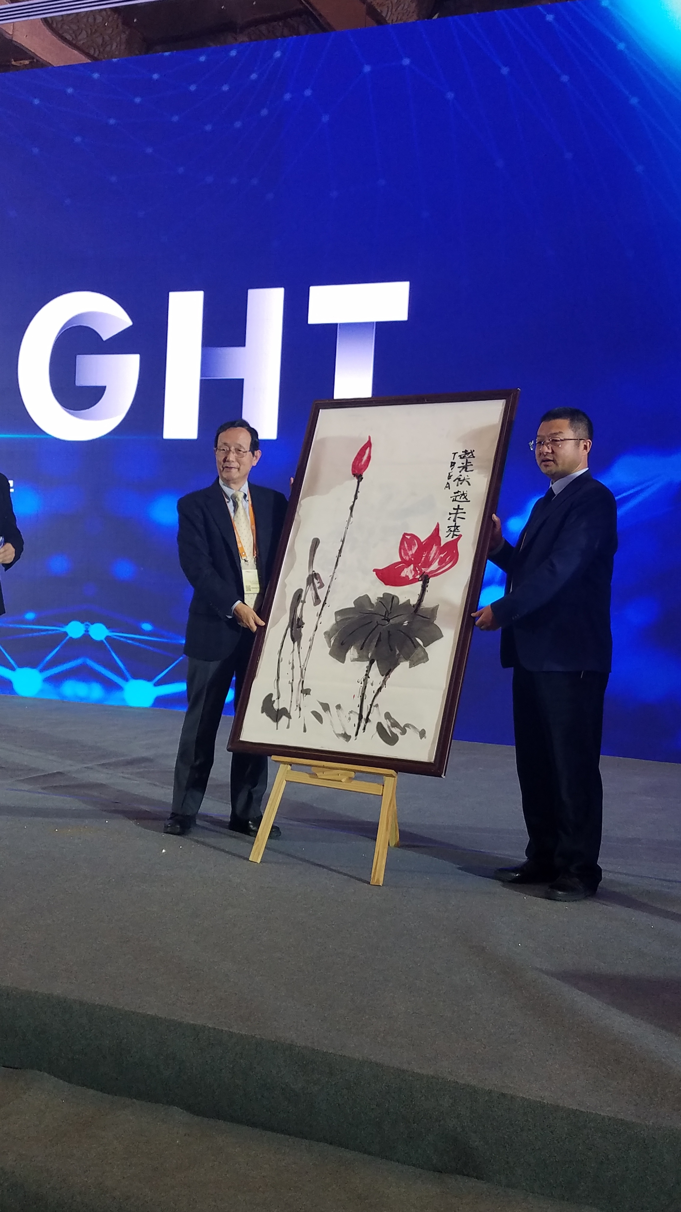 中国西安で開催されたPVSEC-29で小長井教授が、招待講演(Rib太陽電池)を行いました。小長井・石川研究室から、口頭発表1件、ポスター発表4件を行いました。また、小長井教授のPVSECへの長年にわたる国際貢献と功績を称え、写真のとおりオリジナルの絵が贈呈されました。