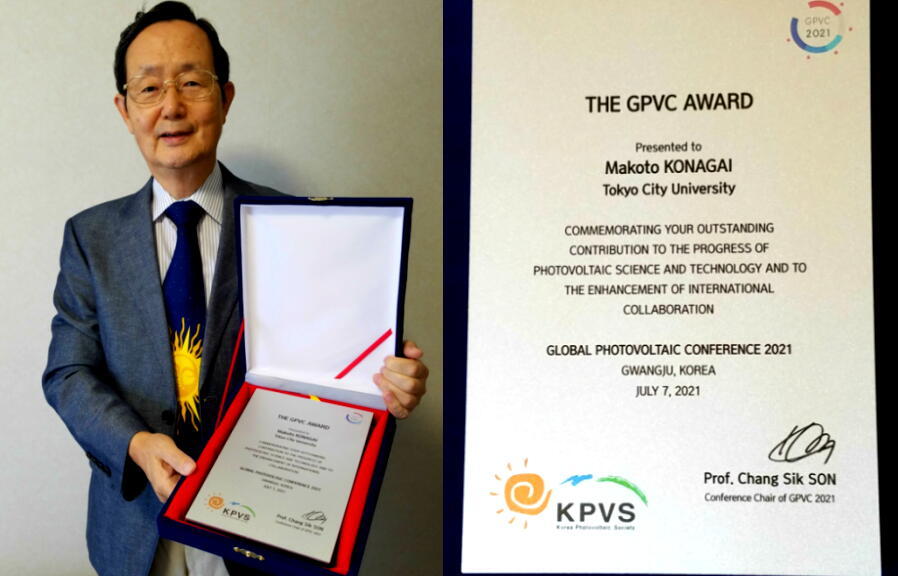 小長井特別教授が、韓国で7/7に開催された太陽光発電に関する国際会議GPVC(Global Photovoltaic Conference)にて、GPVC Awardを受賞されました。長年にわたる太陽電池研究と日韓の研究協力体制構築への尽力が評価されました。