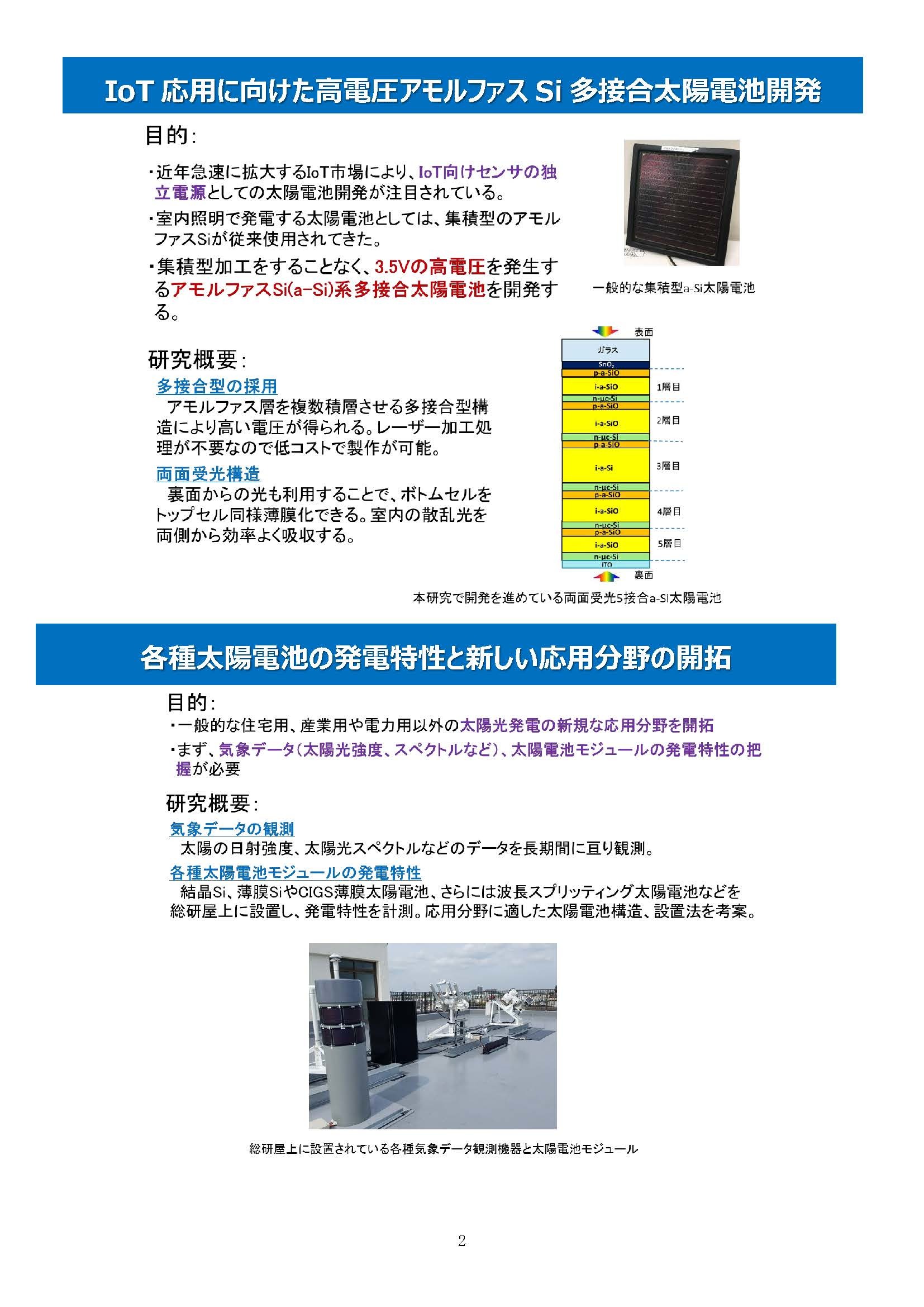 ② IoT応用に向けた高電圧アモルファスSi多接合太陽電池開発